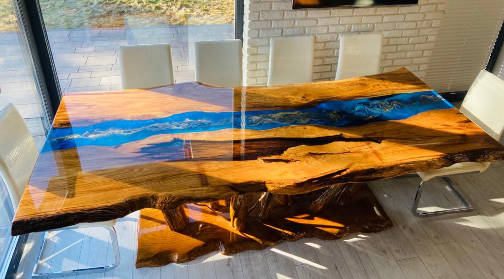 Within the base price, the client may adjust selected elements such as resin color (e.g. turquoise, emerald or other tones) or subtle edge shaping, while maintaining the overall concept of the presented design.